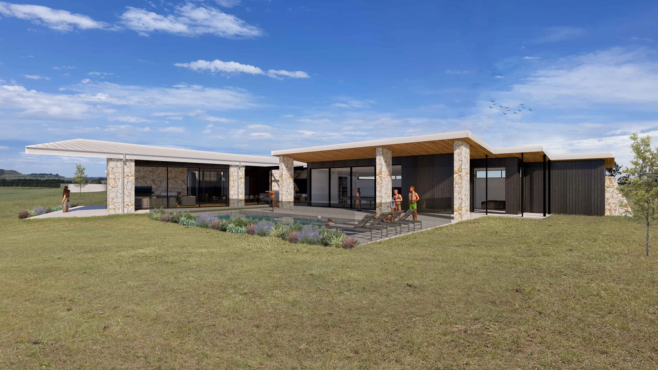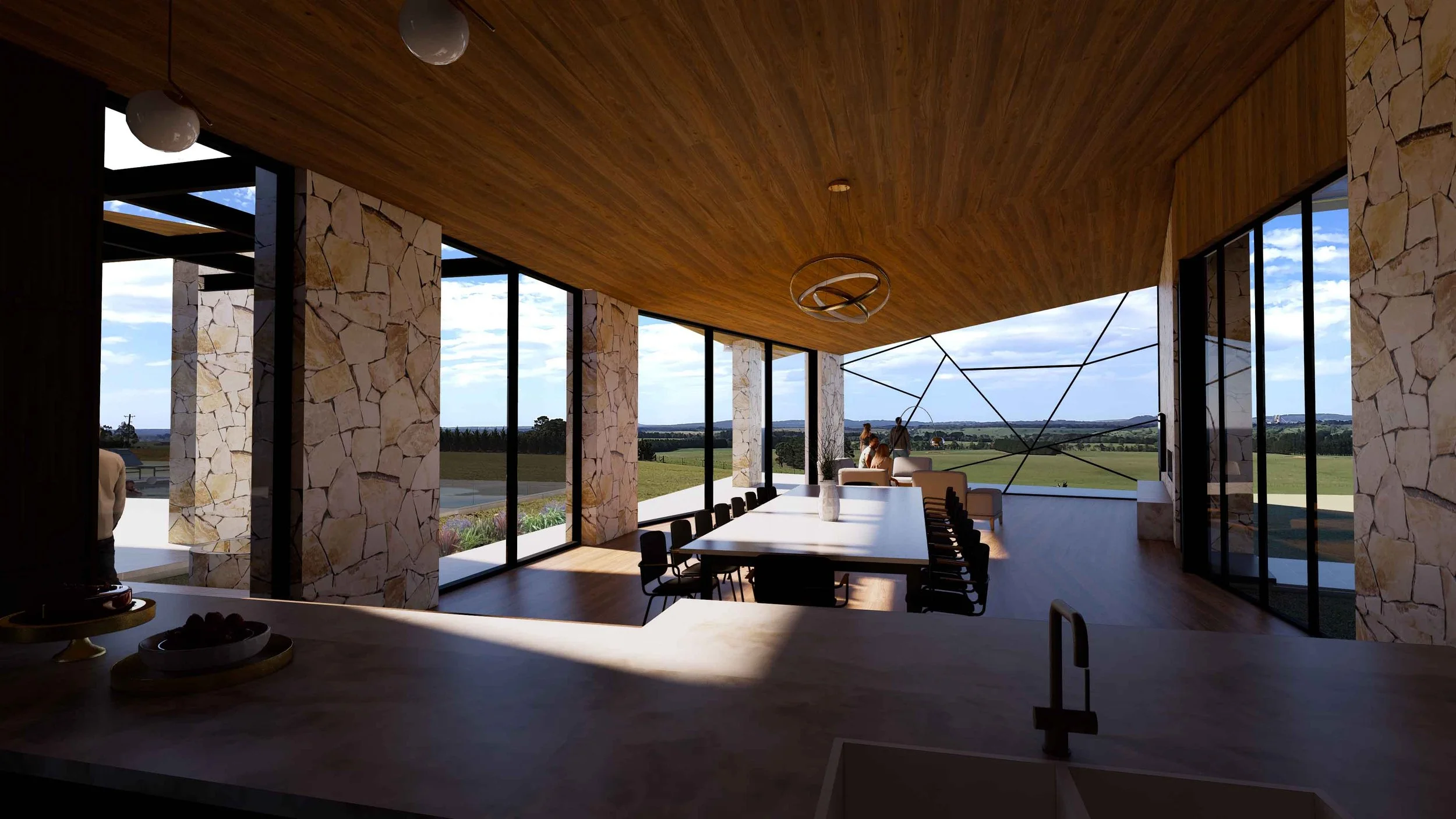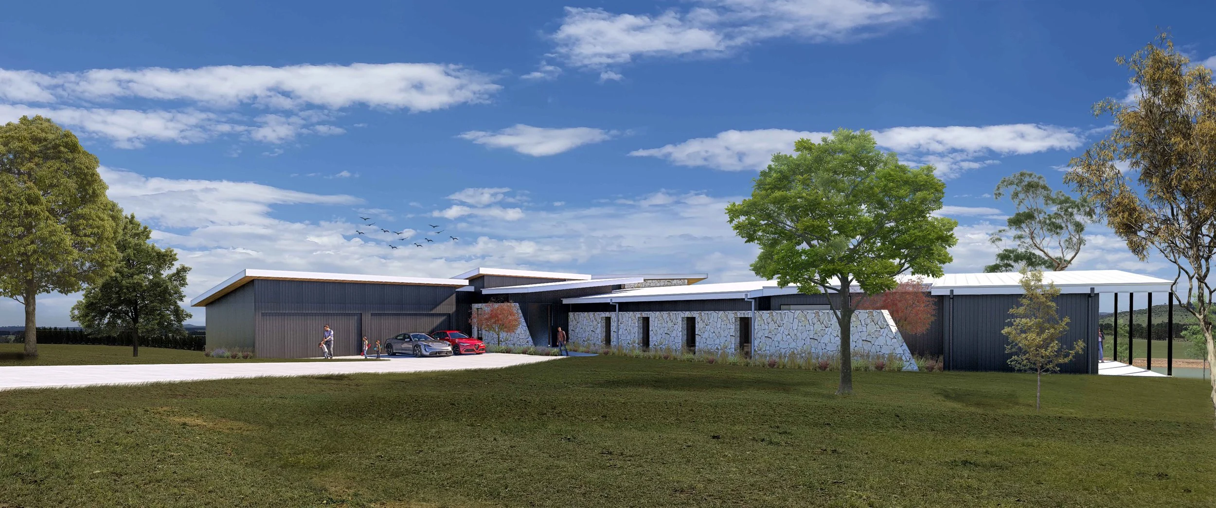 Located amid the rolling hills and unspoilt bush of the historic Southern Highlands, this space offers rural seclusion, lifestyle farming & a quieter existence. The immediate sense of relaxation will make this the ideal weekender and the perfect home. The natural beauty of the property is showcased through the unique building form and the use of robust materials will withstand the weather conditions. A warm, homely feel is created through the abundance of natural light, use of natural materials and soft furnishings. The region is steeped in history and it is intended that this building is a modern vista echoing local heritage, family values and provides a homely feel in a contemporary way.